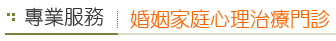 服務內容:婚前與婚姻協談、親子家人關係協談、情緒管理、壓力調適、家暴與性侵害受害者心理治療。