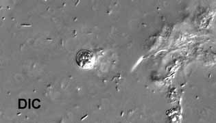 UV fluorescence and differential interference contrast (DIC) microscopy.