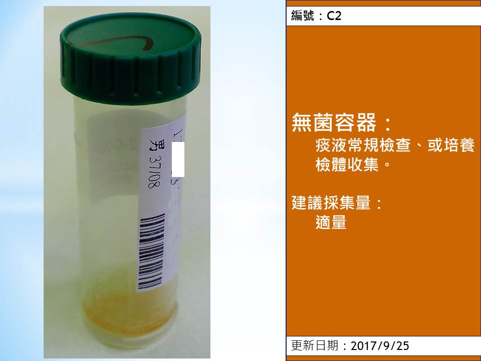 無菌容器,常用於痰液培養TB培養檢體收集。備註: |
