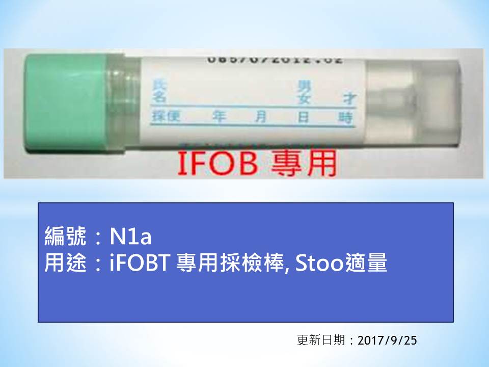 N1a | iFOBT 專用採檢棒 | 糞便淺血免疫定量,iFOBT 專用採檢棒備註:取Stool適量 | |