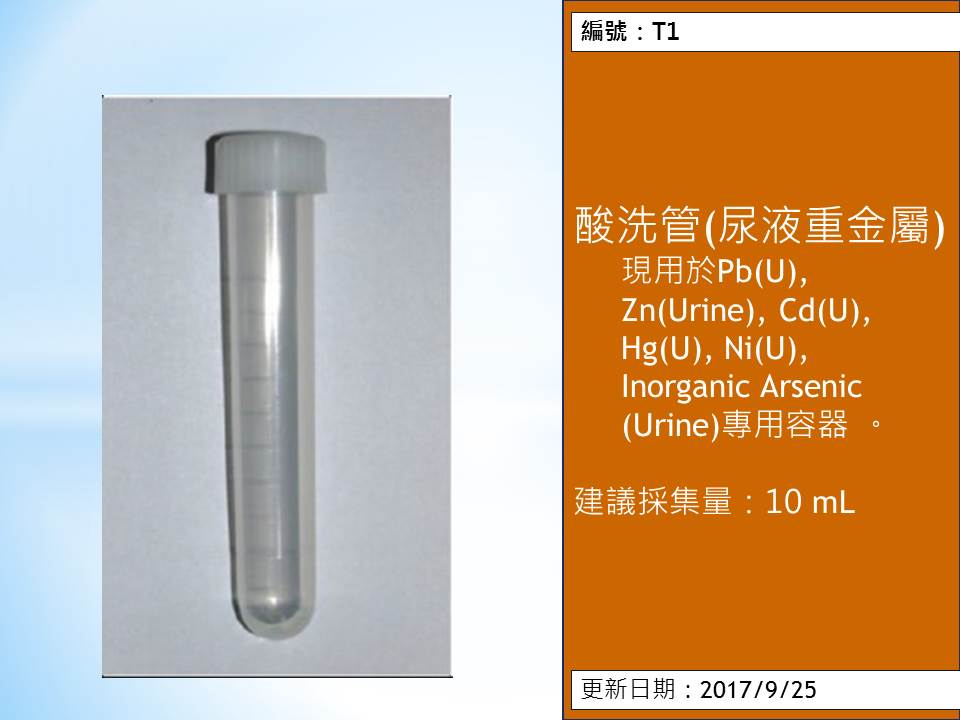 T1 | 酸洗管(尿液重金屬) | ![]() |
