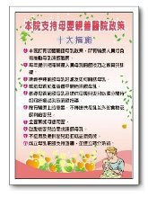 本團隊致力於提供孕產婦、嬰兒及其家屬一個親善的醫療環境,並配合國家政策,極力推廣母乳哺餵,給予每個嬰兒生命最好的開始。我們積極的推動母乳哺育與 親子同室,在每次孕產婦至本院時(包括產檢、生產...等)及產後返家修養,透過團隊間的彼此合作,堅持只給孕產婦及嬰兒最好的。針對本院出生的新生兒,會於產婦出院前評估母乳哺餵技巧,若需持續協助,在徵求產婦同意後會協助轉介至本市東、西區衛生所。 |