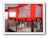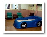 病房環境規劃以溫馨、人性化為主,配合兒童發展、疾病治療需要和安全考量為設備、空間設計重點,在病房的牆面運用大量卡通圖案美化,並設有兒童遊戲區分散兒童對於病痛和住院壓力,且於護理人員的白色制服外加穿可愛圍兜來減少病童恐懼,增進護病關係。為了病童安全,設計了嬰兒床、汽車床、防跌床罩、娃娃車與輪椅的安全帶、用藥標示…等具有創意又符合兒童需要的安全措施。 |