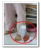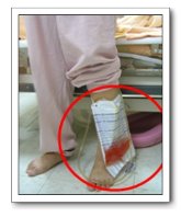 婦科手術術後第1∼2天,每天需注射點滴2500C.C.,因病患未排氣,無法進食,故必須存留導尿管,造成病患行走上不方便,易有牽扯尿管的情況。 尿袋綁在腰部,會有尿液逆流感染的潛在危險性;尿袋垂地,又會造成感染;手拿著尿袋,會感到害羞及不美觀。 |