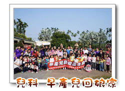 針對早產兒照護方面由各專科團隊提供整體性照護;97年1月與早產兒基金會合作加入「極低體重早產兒追蹤計劃」,由早產兒個管師收案列管,注重出院後早產兒的生長評估、眼科評估、聽力評估、神經發育與粗動作檢查、心智發展評測、早產兒電訪及記錄等。 |