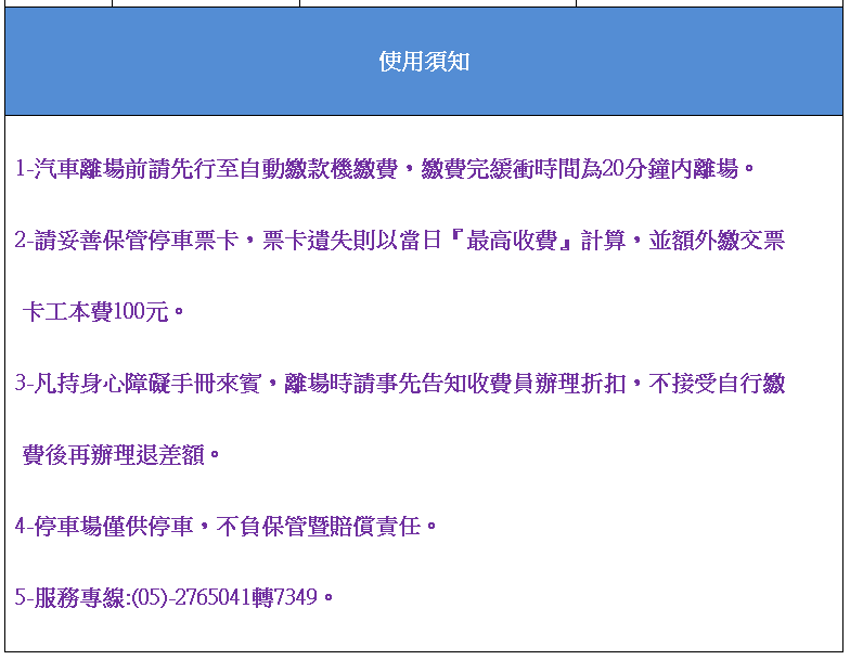 停車場公告,自110年01月05日起修訂汽車停車場計費標準: