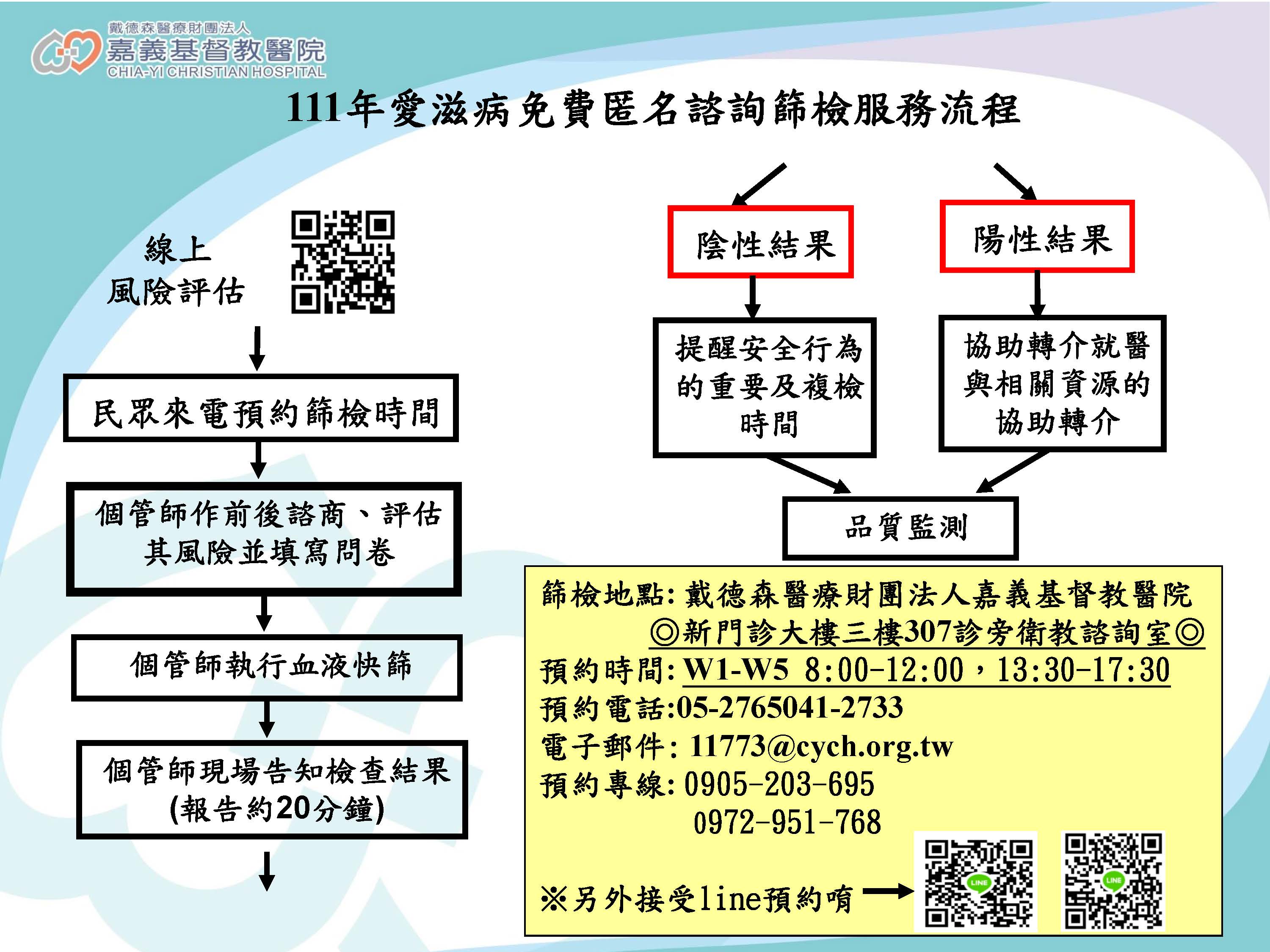 111年嘉基愛滋病免費匿名篩檢開跑了!