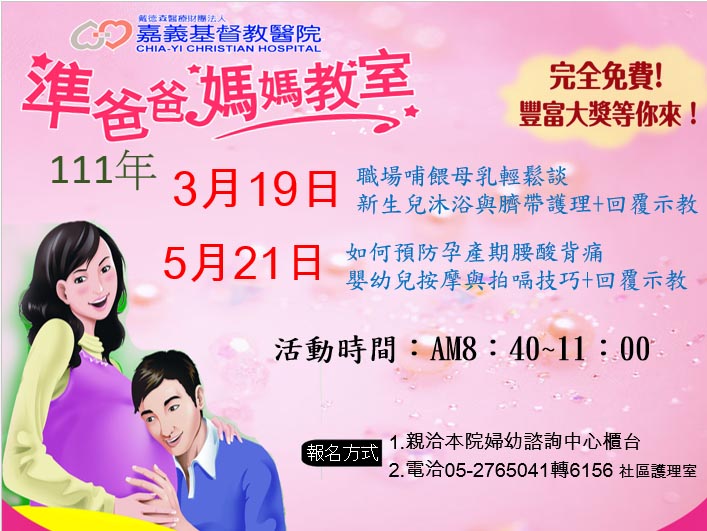 * 報名資格:限孕婦本人上課需憑孕婦手冊報到。