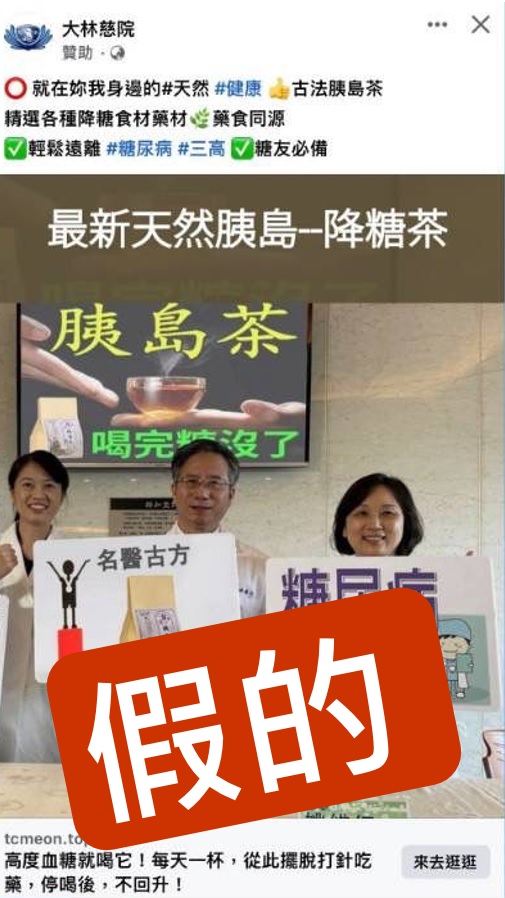 【澄清】有關網路消息冒用本院醫師照片販賣「胰X茶」之事,本院嚴正澄清