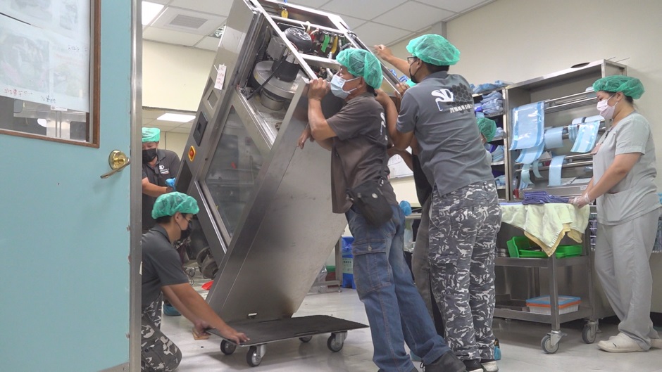 養護工程室羅開元主任表示:為配合舊手術室醫療使用時程,手術室14盞無影燈的拆卸、搬移,及供應中心如高壓滅菌鍋、器械清洗機等大型設備,在短時間內完成搬遷其實相當不容易,因設備體積相當大,需請委外廠商特別注意搬運時避免造成走道、牆面、周圍儀表及面板的摩擦與毀損。