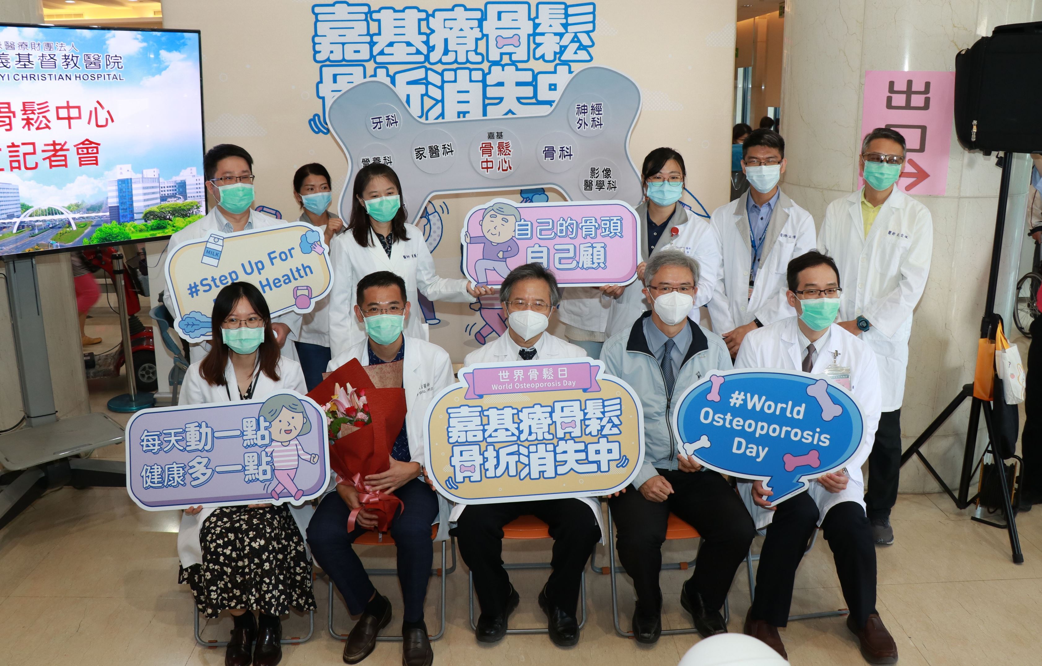 為保住您的骨本,嘉義基督教醫院為幫助更多民眾遠離骨質疏鬆症,落實及早發現及早治療之預防醫學觀念,特別成立「骨鬆中心」,於10月18日(二)在門診大樓一樓舉辦「骨鬆中心」成立記者會,並配合國際骨鬆日健康篩檢活動,進行連續兩日的免費篩檢活動,幫助中高齡民眾完整了解自己的骨質狀況。