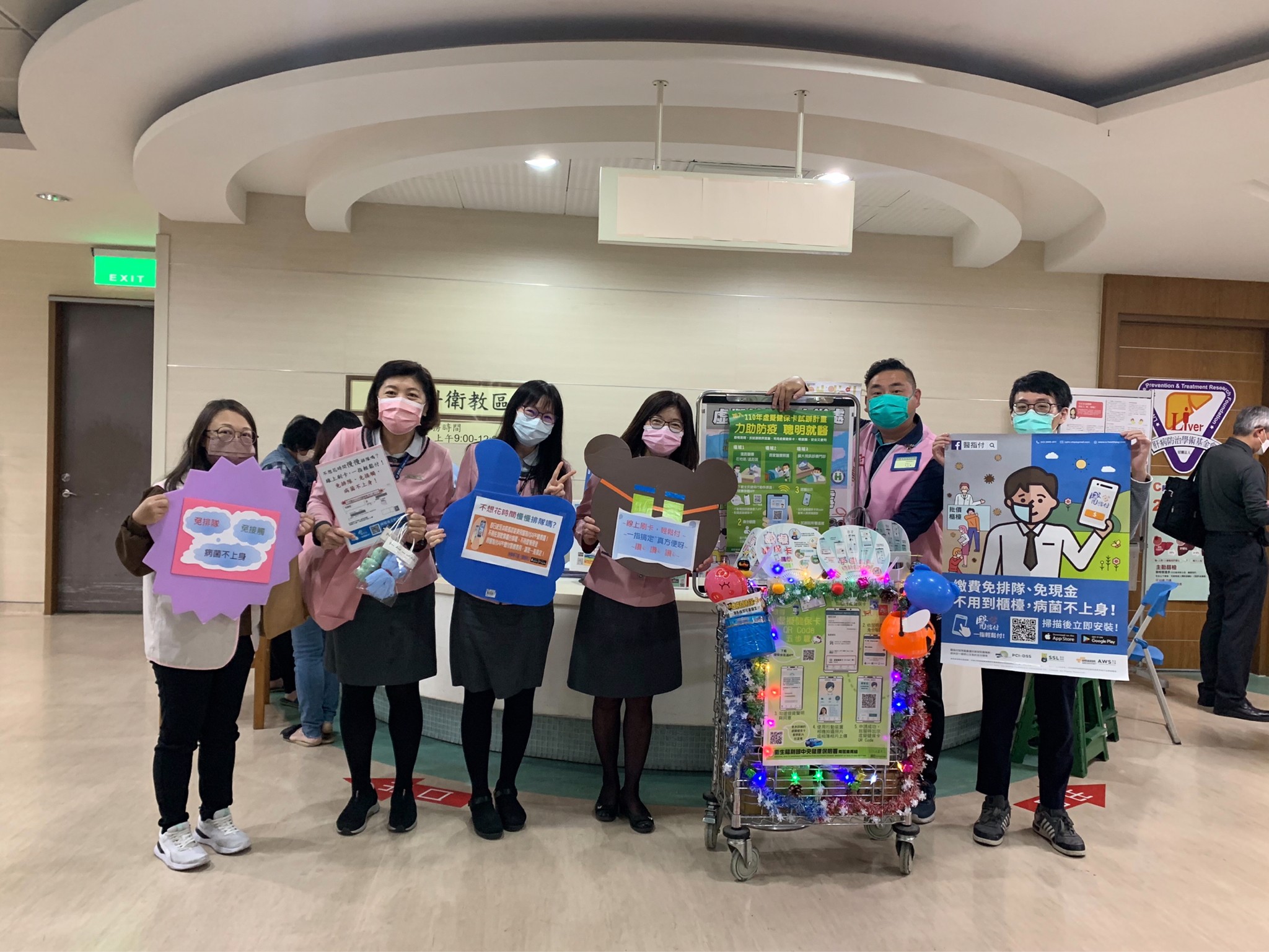 嘉義基督教醫院配合中央健康保險署政策,即日起,於西醫門診全面啟用「虛擬健保卡」看診服務,免帶卡、可授權,虛擬健保卡就醫方便又安全。目前嘉基醫療業務室同仁與健保署南區業務組安心上工人員,於院內進行虛擬健保卡和醫指付宣導,鼓勵民眾踴躍開通下載綁定,使用虛擬健保卡看診再配搭使用醫指付電子行動支付,就可不用到櫃檯排隊就能進行批價,輕鬆繳付醫療費用。