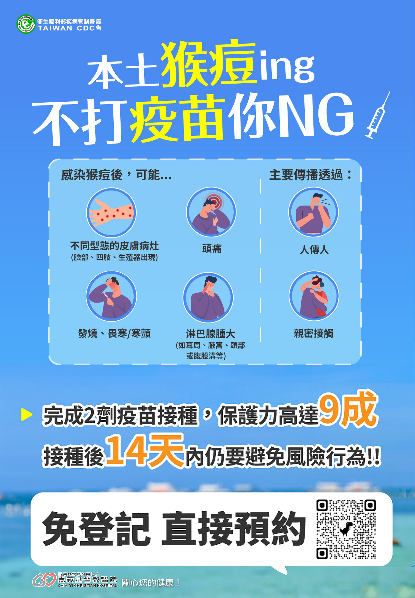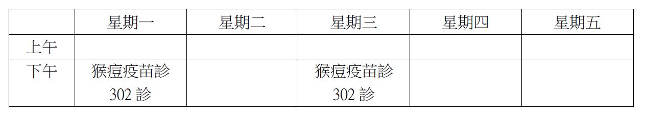 六、猴痘特診:14:00~15:30(請於15:00前報到),每診限25位名額。