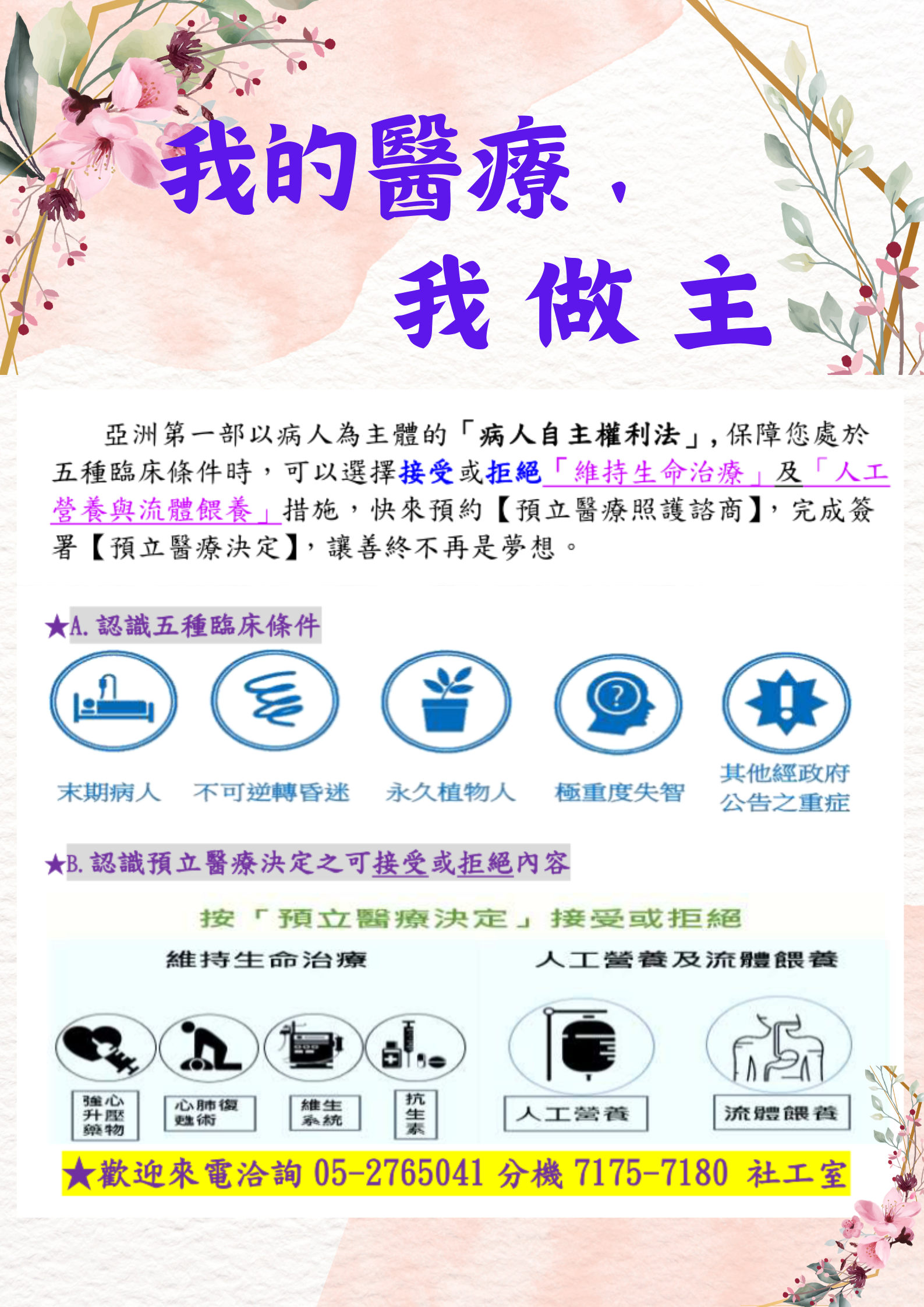 當您可以自由選擇時,快來參加【預立醫療照護諮商】+簽署【預立醫療決定】送自己一份愛的禮物。