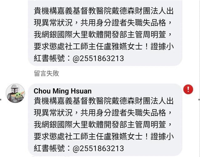 *網銀國際股份有限公司(大里軟體開發部)亦無名為「周明萱」之員工