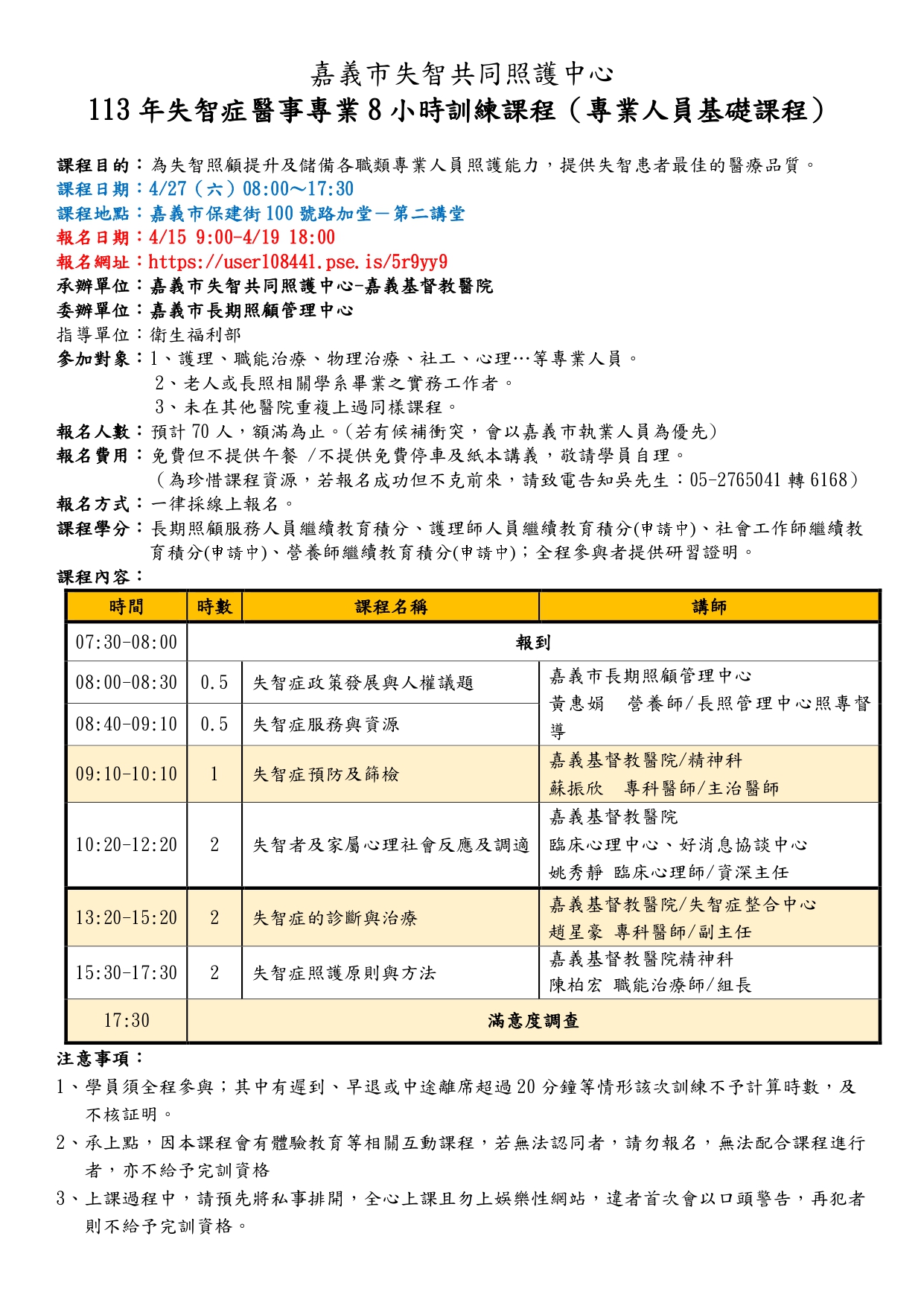 承辦單位:嘉義市失智共同照護中心-嘉義基督教醫院