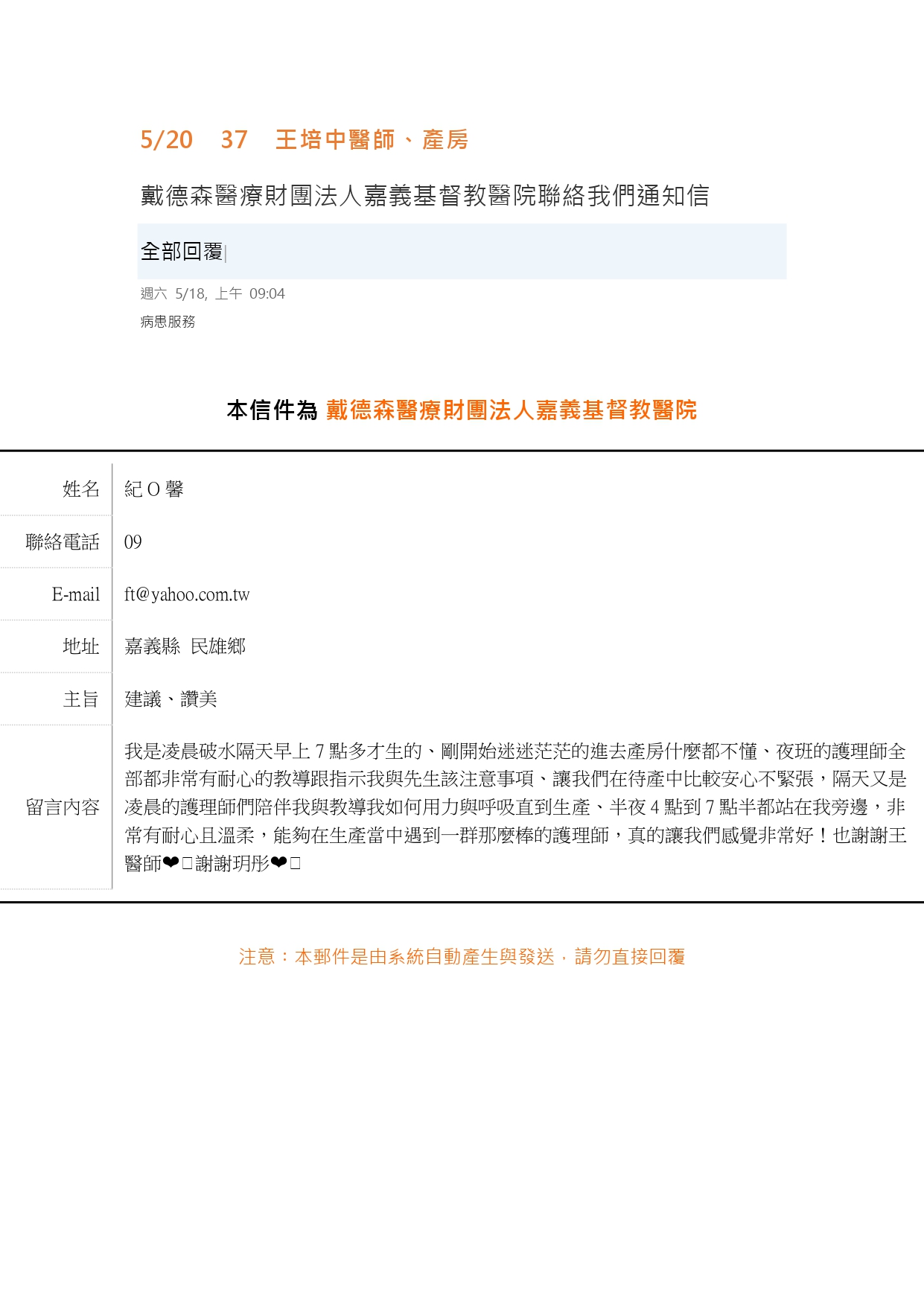愛是永不止息-來自病人的肯定與感謝 嘉基 婦產部王培中醫師【仁心仁術】