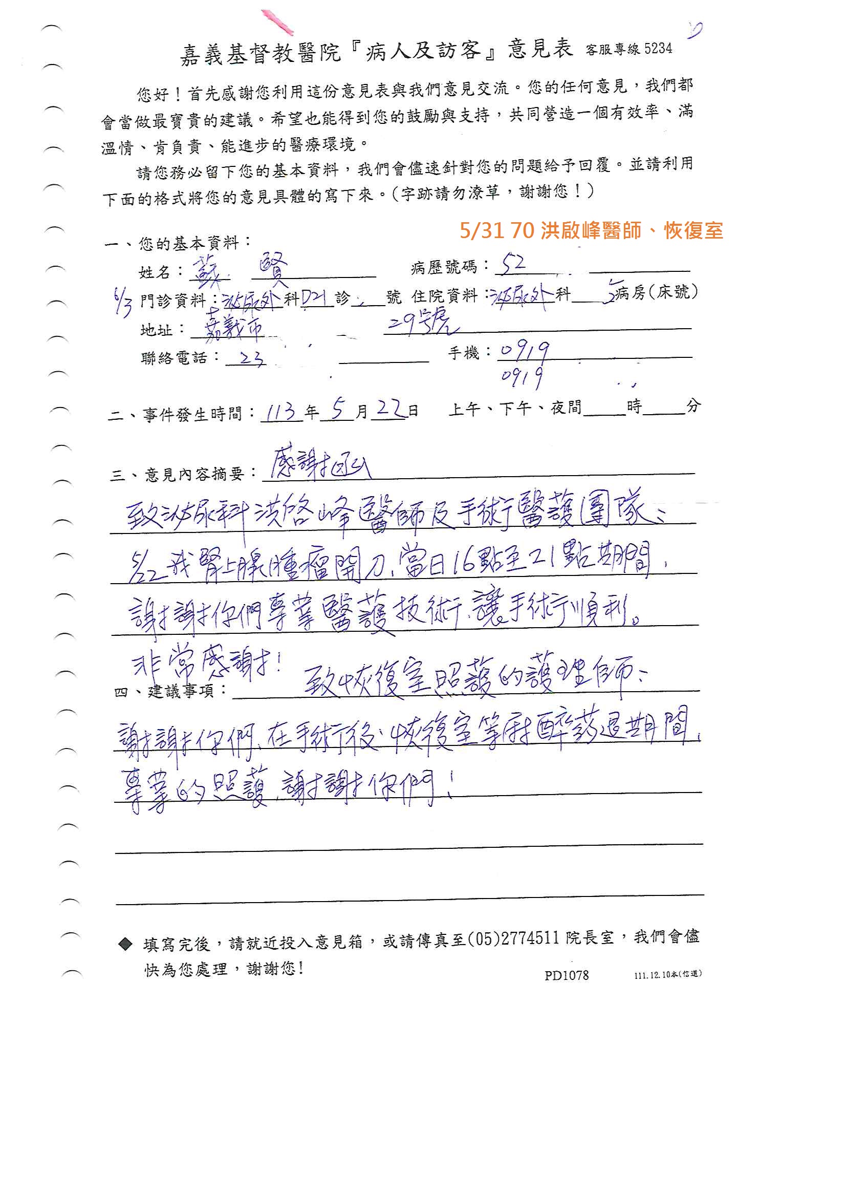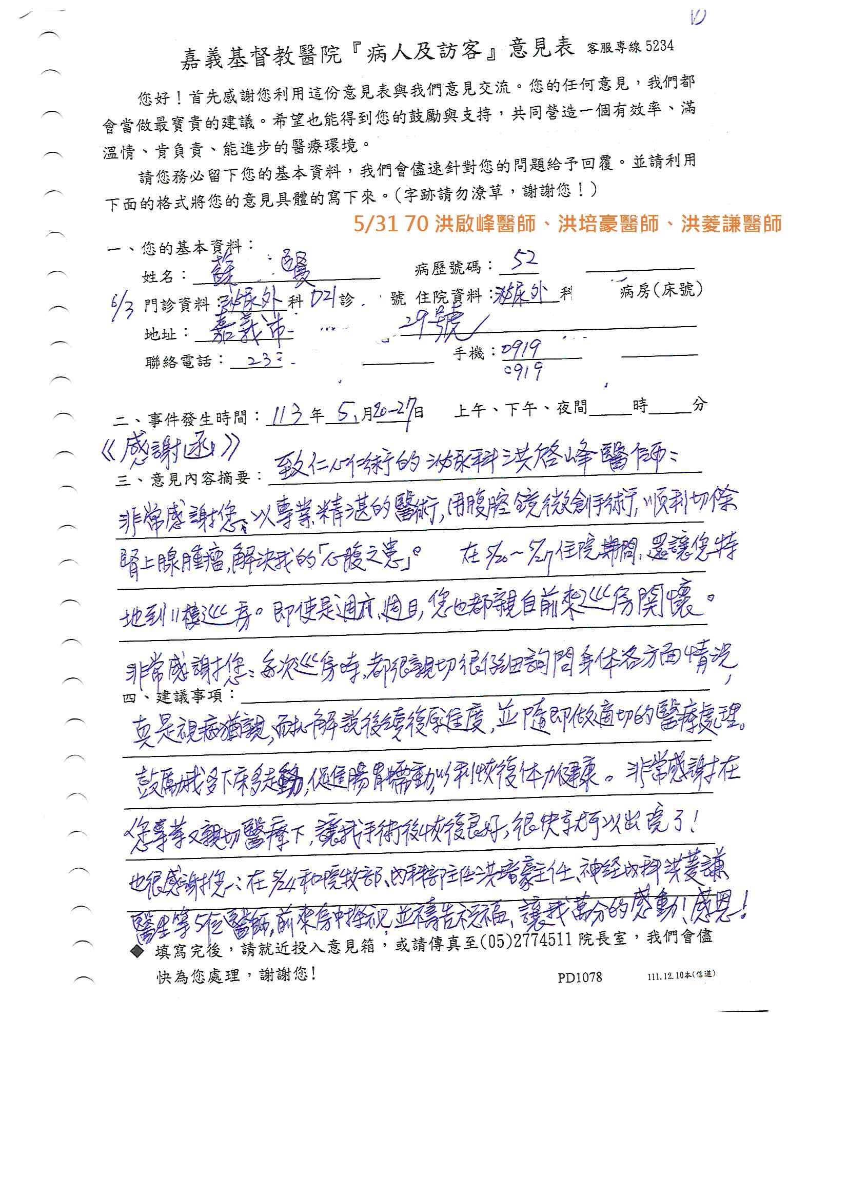 愛是永不止息- 來自病人的肯定及感謝 嘉基 泌尿科 洪啟峰醫師【醫術精湛 】