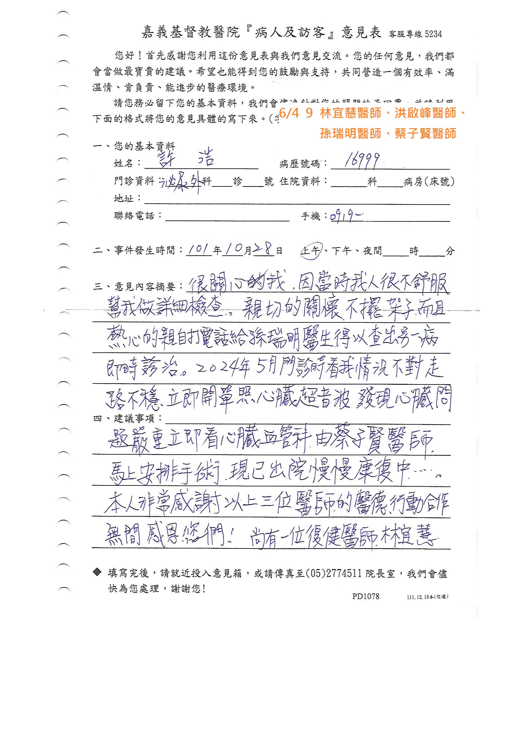 愛是永不止息- 來自病人的肯定及感謝 嘉基 心臟血管科李吉斌醫師【懸壺濟世】