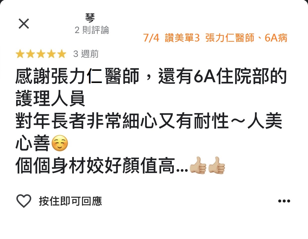 愛是永不止息 來自家屬的肯定及感謝 嘉基 胃腸肝膽科張力仁醫師【視病如親】