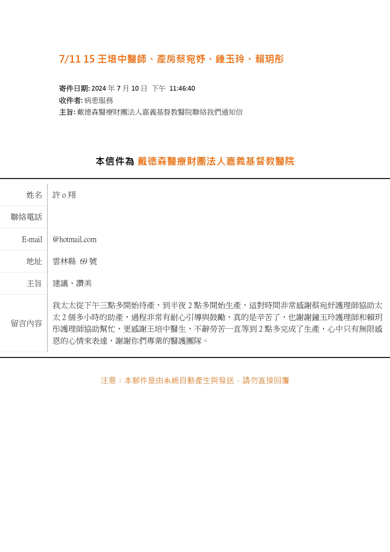 愛是永不止息- 來自病人的肯定及感謝 嘉基 婦產部 王培中醫師 【仁心良術】