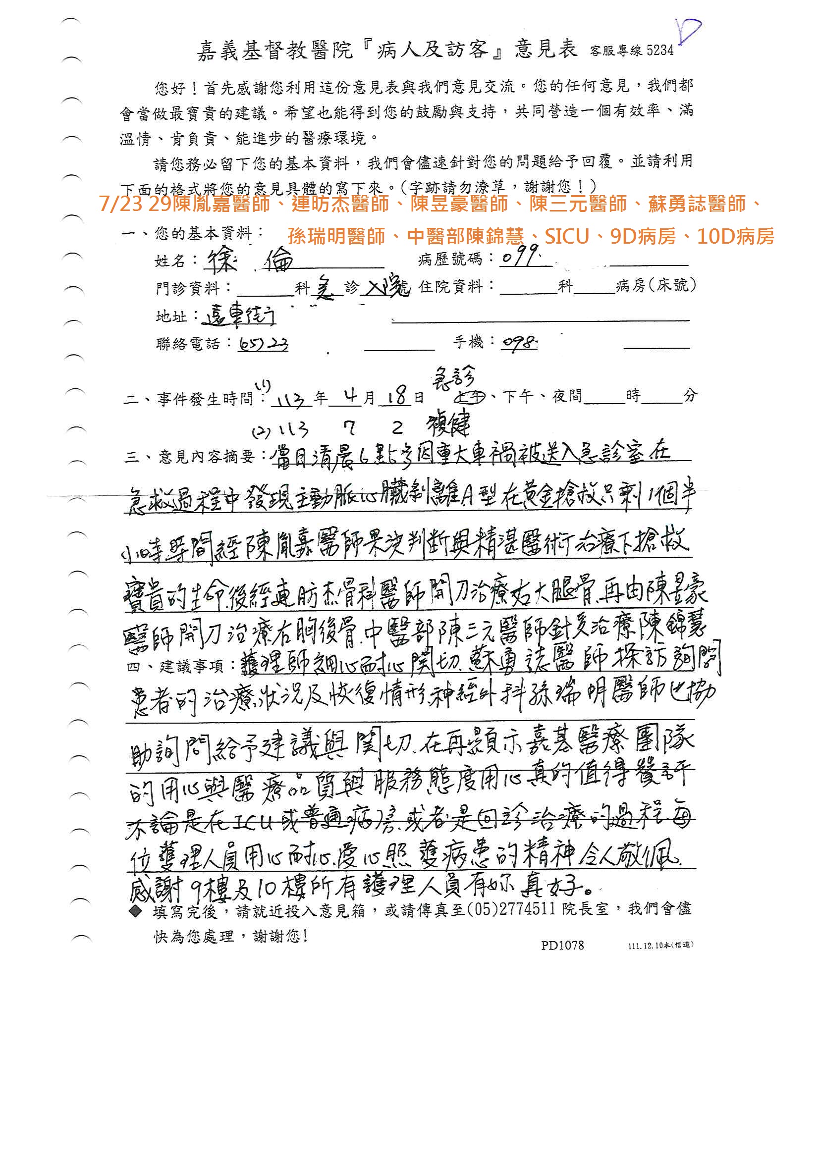 讚美 心臟血管外科 陳胤嘉醫師