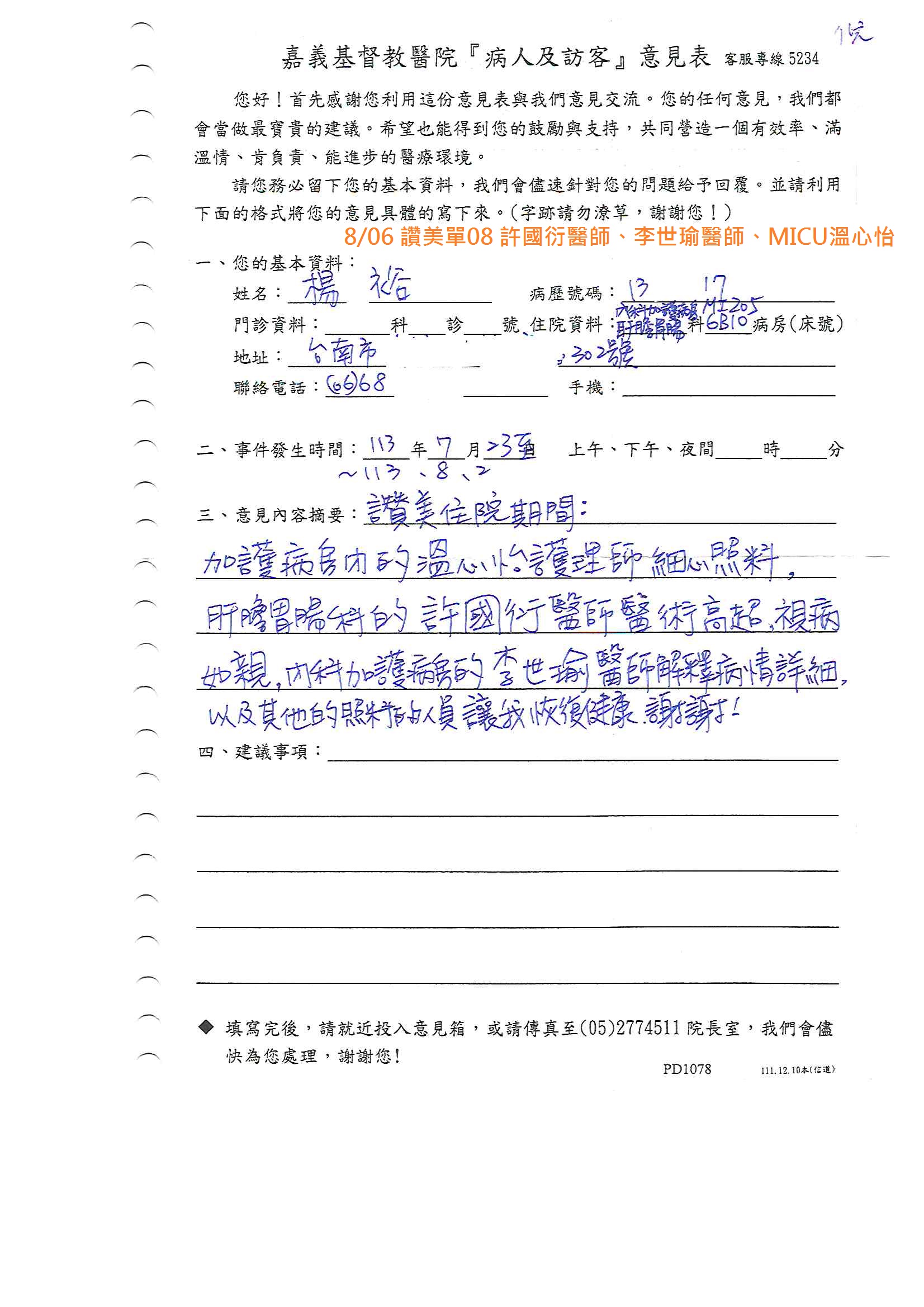 讚美 胃腸肝膽科 許國衍醫師
