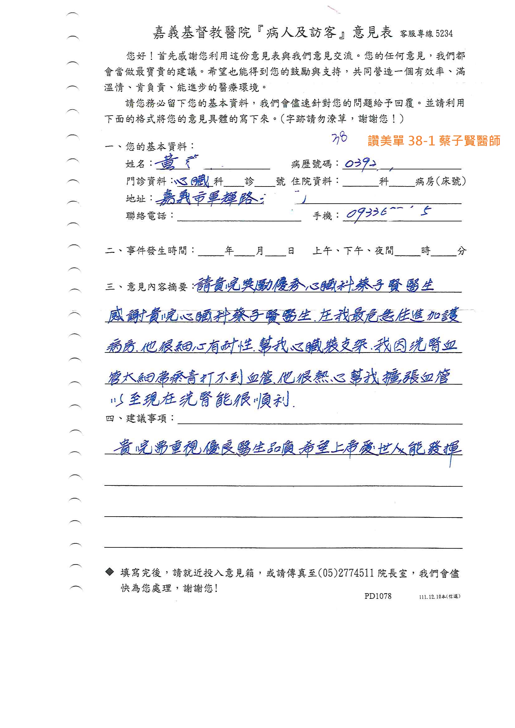 愛是永不止息 來自家屬 的肯定及感謝 嘉基 心臟血管科 蔡子賢醫師【杏林春暖】