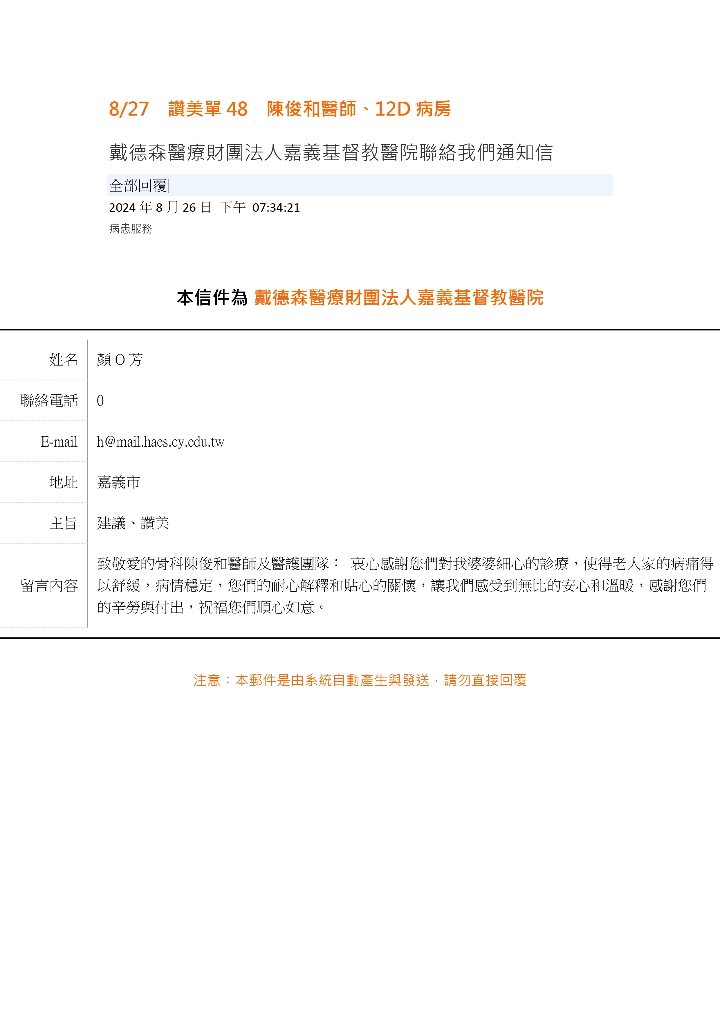 讚美 骨科部 陳俊和醫師
