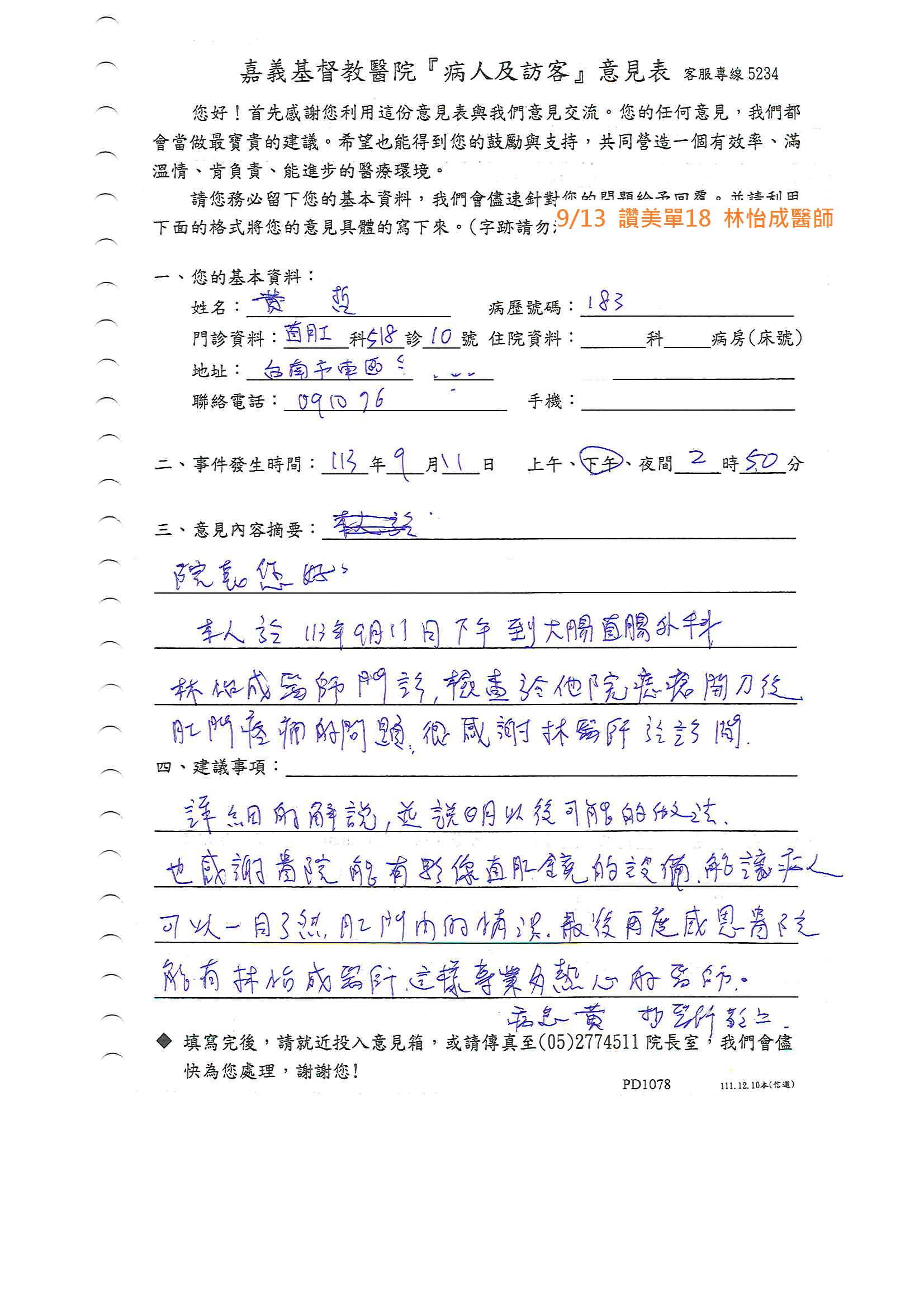 愛是永不止息 來自病人的肯定及感謝 嘉基 大腸直腸外科林怡成醫師【仁心仁術】