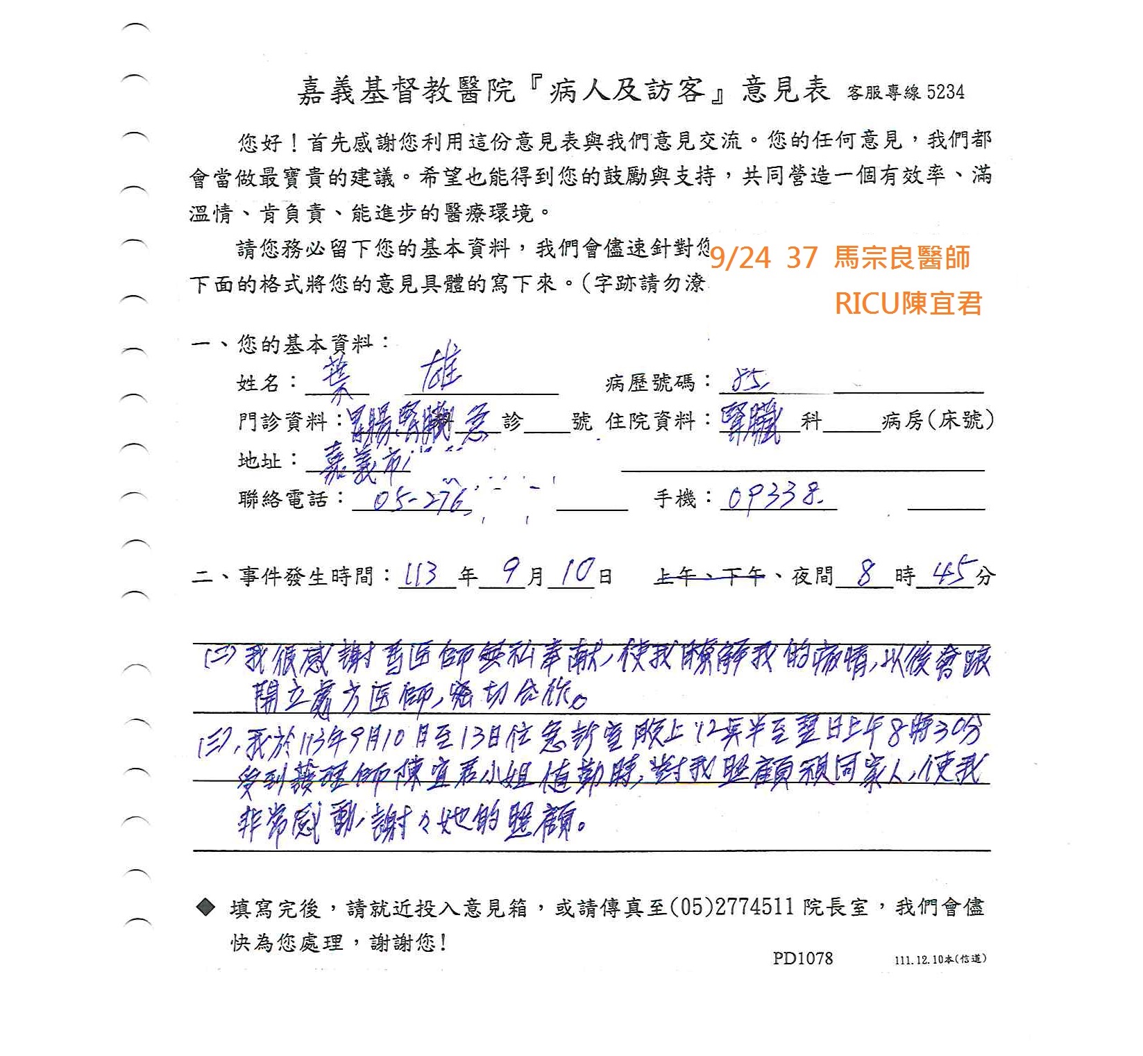愛是永不止息 來自病人的肯定及感謝 嘉基 腎臟內科 馬宗良醫師【仁心仁術】
