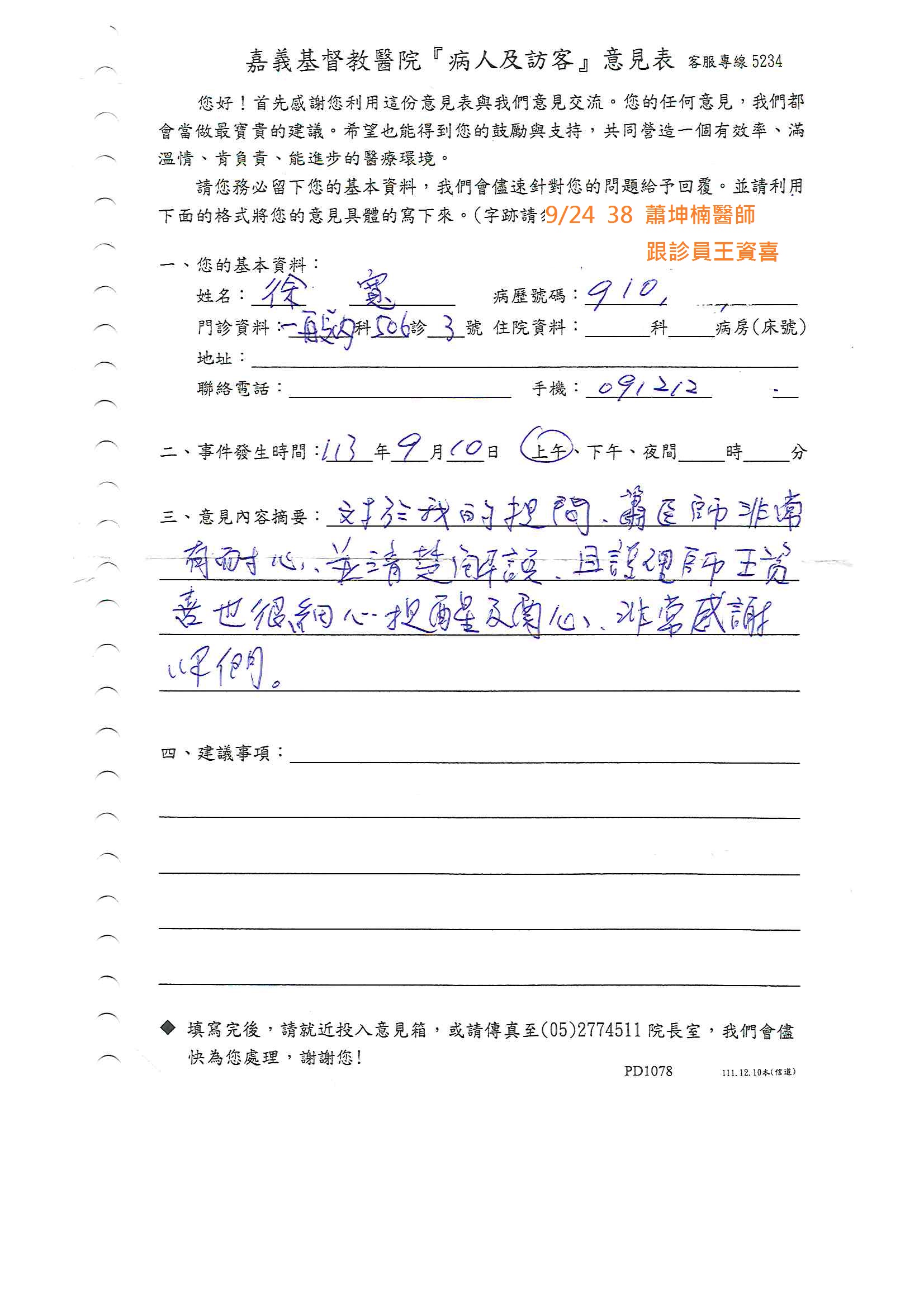 讚美 一般內科 蕭坤楠醫師