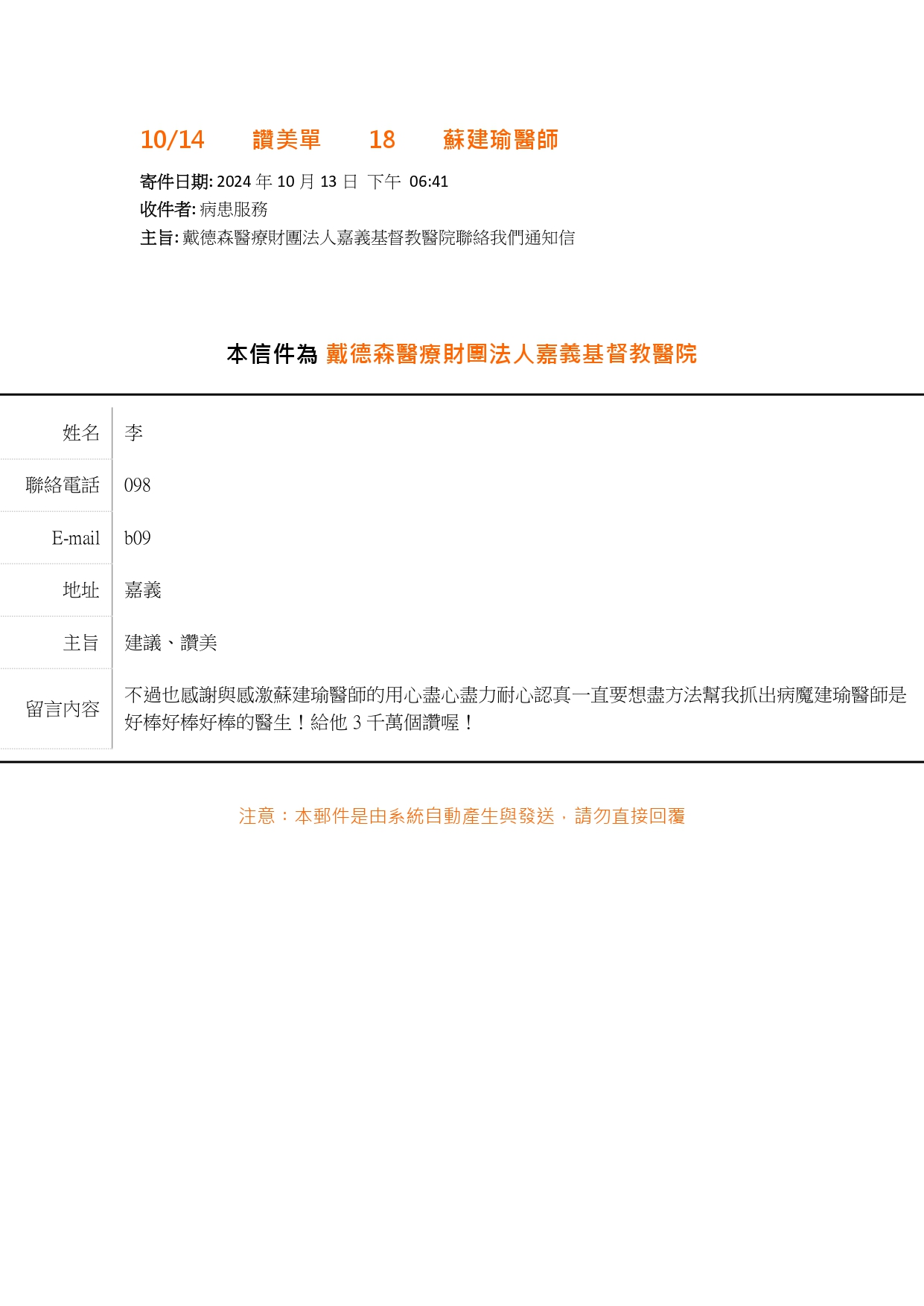 愛是永不止息 來自病人 家屬 的肯定及感謝 嘉基 神經內科蘇建瑜醫師【大醫精誠】