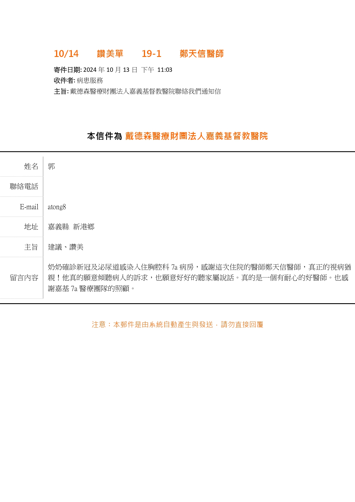 愛是永不止息 來自病人 家屬 的肯定及感謝 嘉基 胸腔內科鄭天信醫師【視病如親】