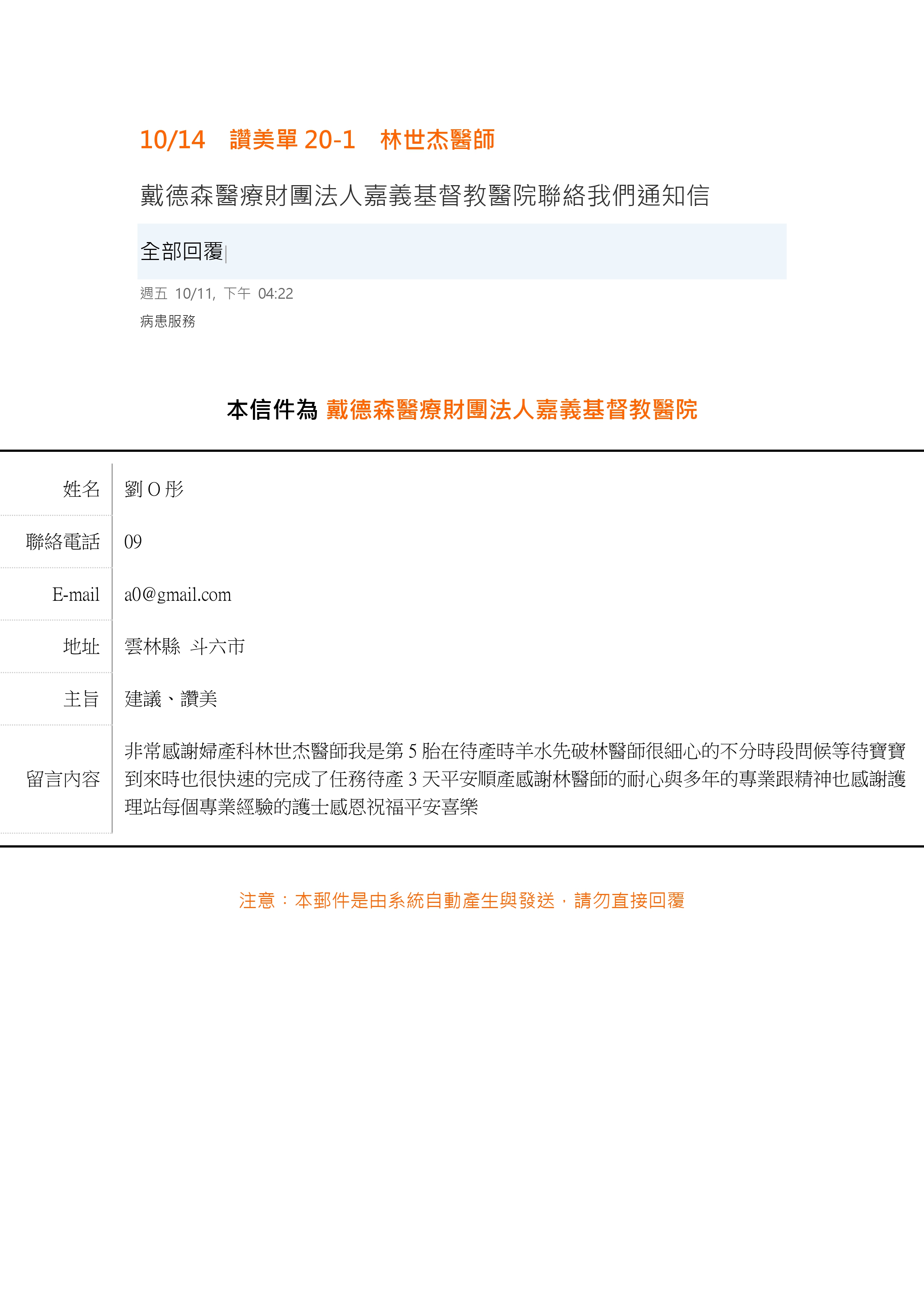 讚美 婦產部 林世杰醫師