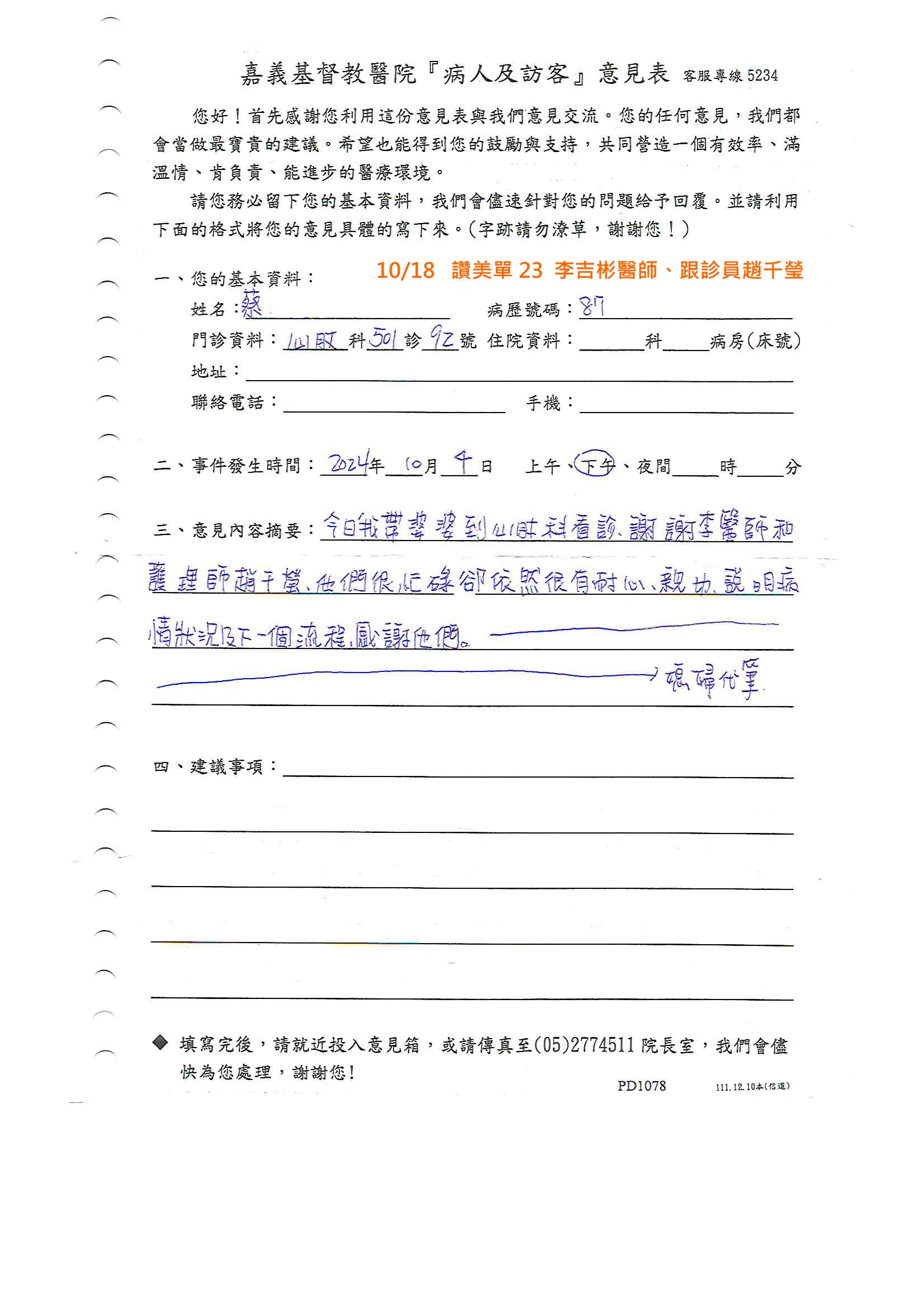 愛是永不止息 來自病人 家屬 的肯定及感謝 嘉基 心臟血管科李吉斌醫師【視病如親】