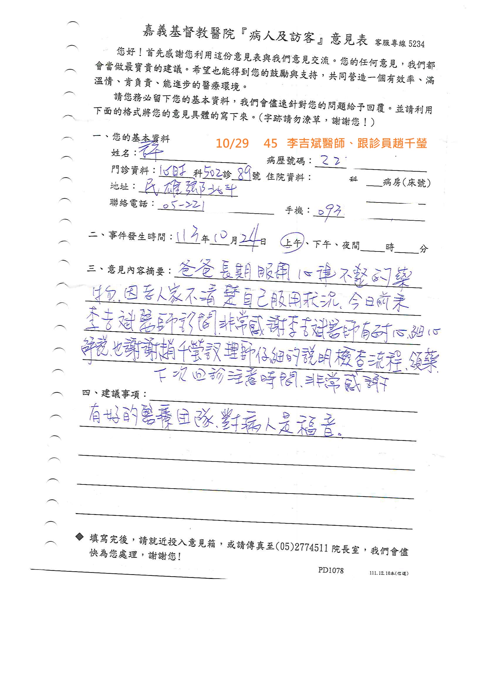 愛是永不止息 來自病人 家屬 的肯定及感謝 嘉基 心臟血管科李吉斌醫師【視病如親】