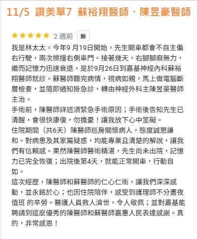 愛是永不止息- 來自家屬的肯定及感謝 嘉基 神經外科陳昱豪醫師【醫術精湛】