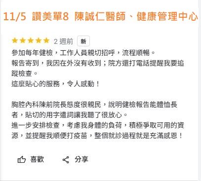 讚美 胸腔內科 陳誠仁醫師