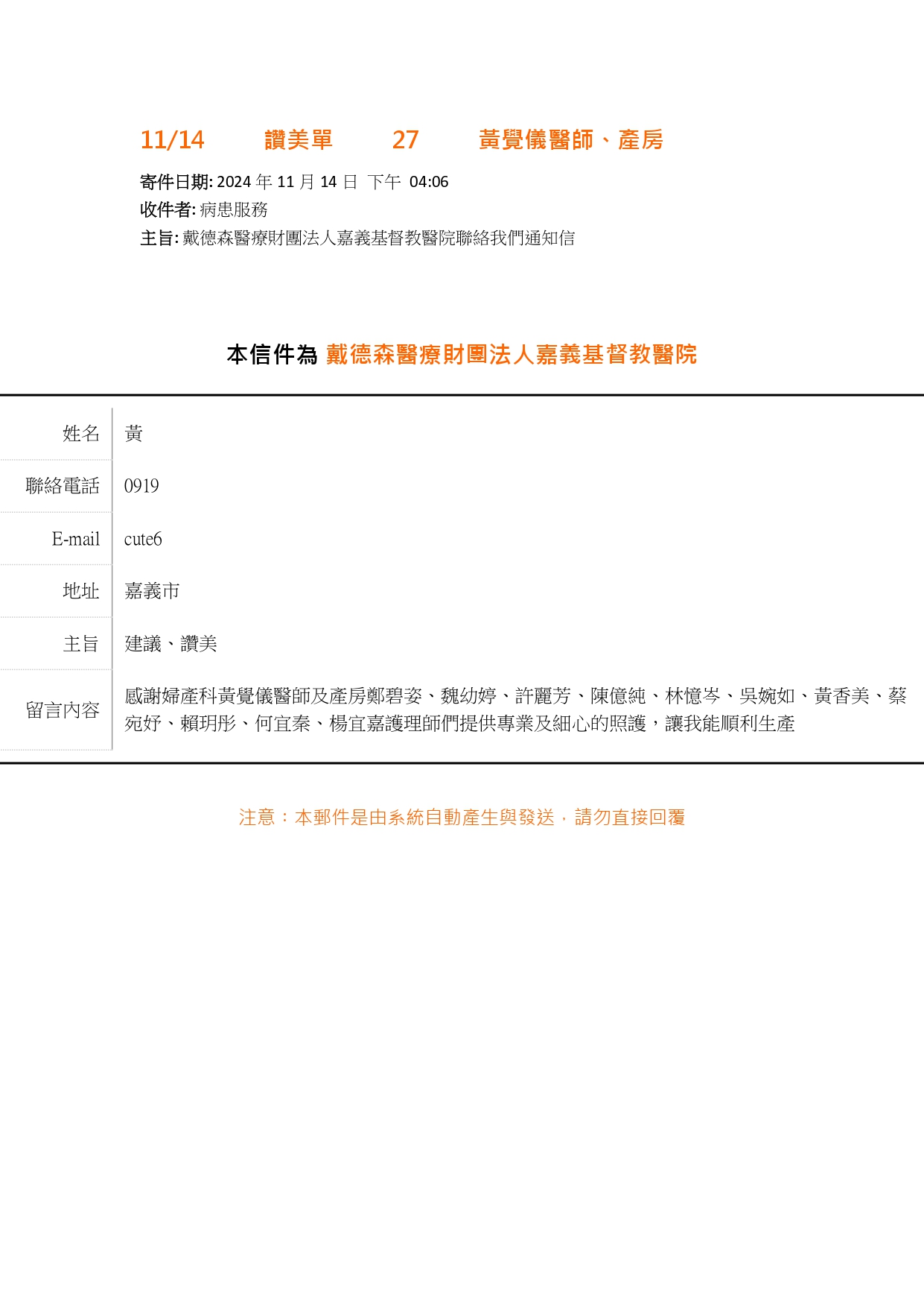 愛是永不止息 來自病人 家屬 的肯定及感謝 嘉基 婦產部黃覺儀醫師【仁心仁術】