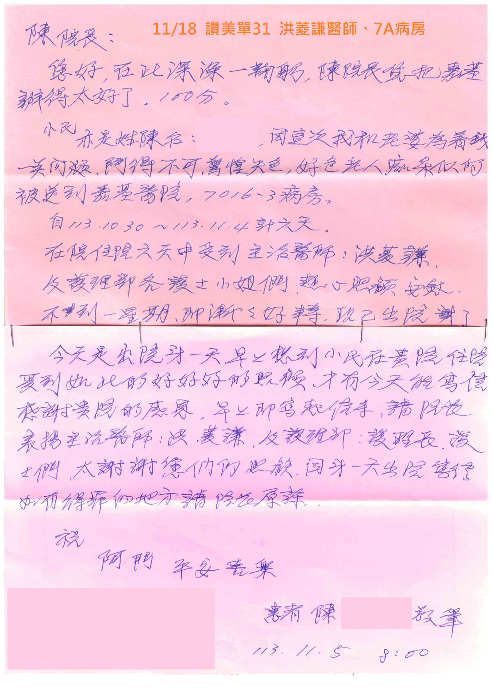 愛是永不止息- 來自家屬的肯定及感謝 嘉基 神經內科洪菱謙醫師【醫術精湛】