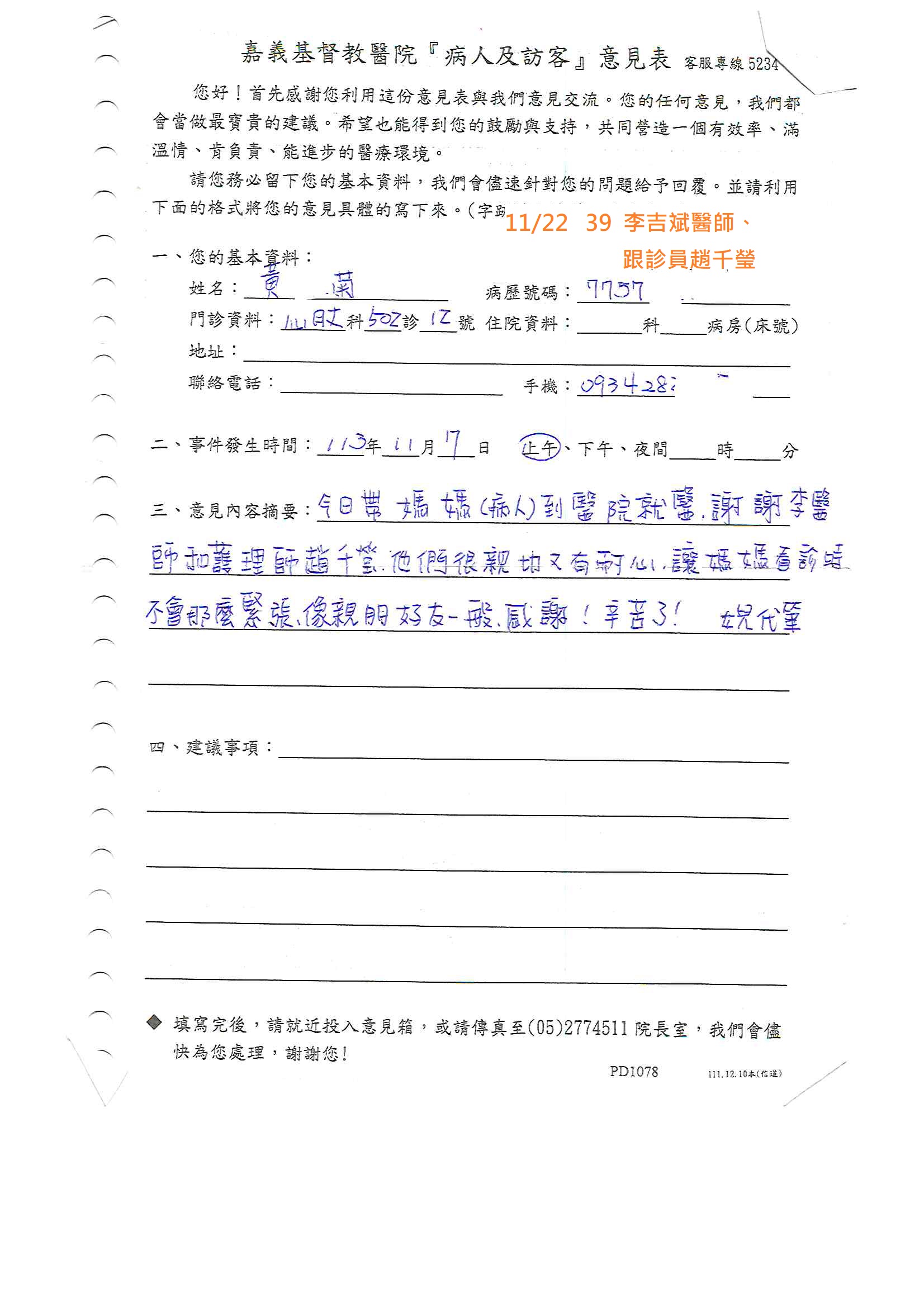 愛是永不止息- 來自家屬的肯定及感謝 嘉基 心臟血管科李吉斌醫師【視病如親】