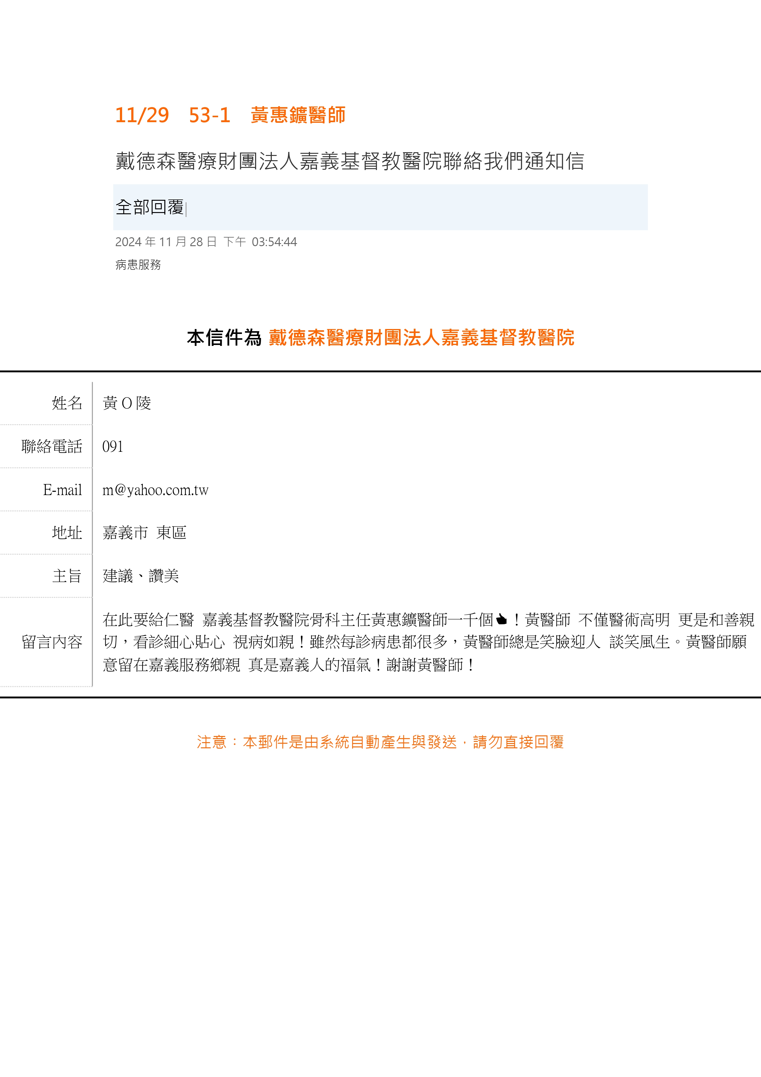愛是永不止息- 來自病人的肯定及感謝 嘉基 骨科部黃惠鑛醫師【視病如親】
