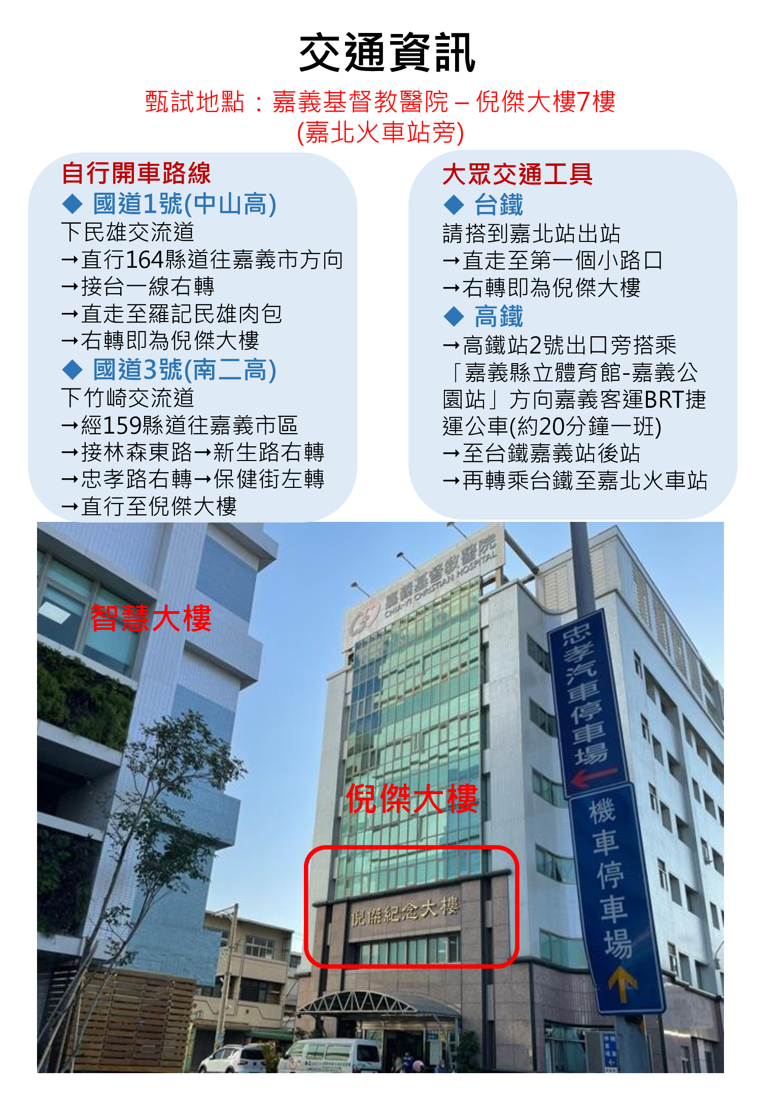 註:甄試當天因故無法前來,可另行安排甄試日期