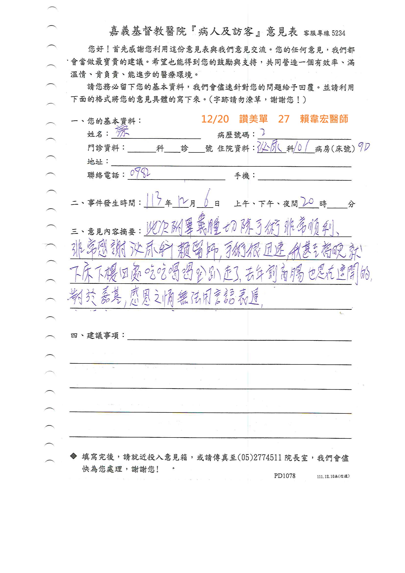 愛是永不止息 來自病人 家屬 的肯定及感謝 嘉基 泌尿科賴韋宏醫師【大醫精誠】