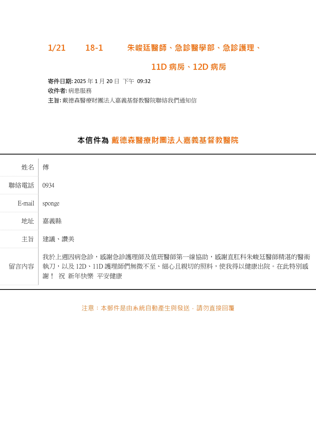 愛是永不止息- 來自病人的肯定及感謝 嘉基 大腸直腸外科 朱峻廷醫師【醫術精湛】