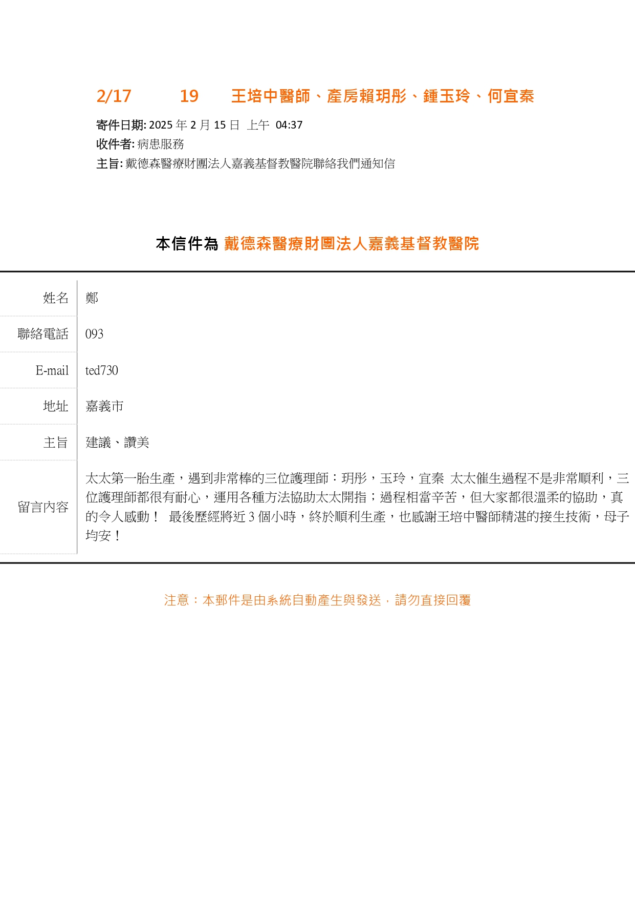 愛是永不止息- 來自家屬的肯定及感謝 嘉基 婦產部王培中醫師【醫術精湛】