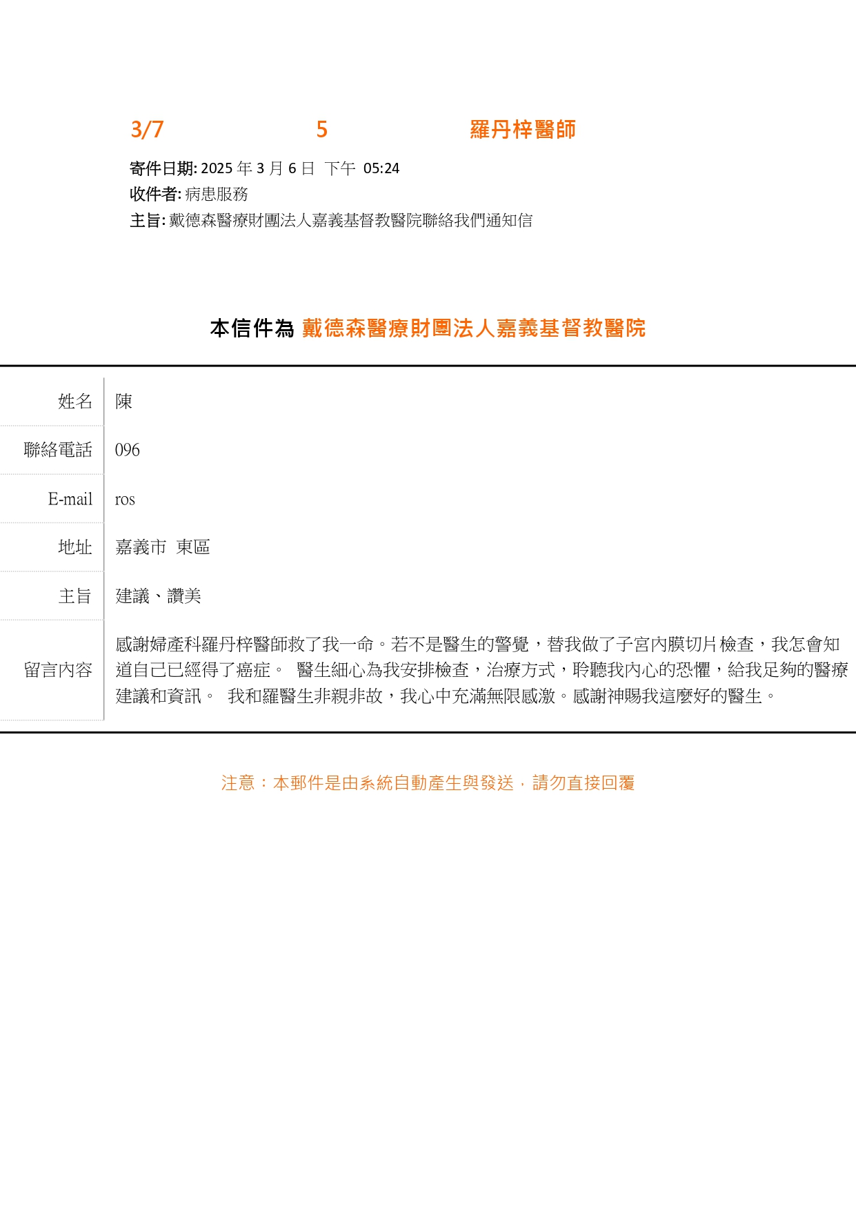 愛是永不止息- 來自病人的肯定及感謝 嘉基 婦產部 羅丹梓醫師【醫術精湛】