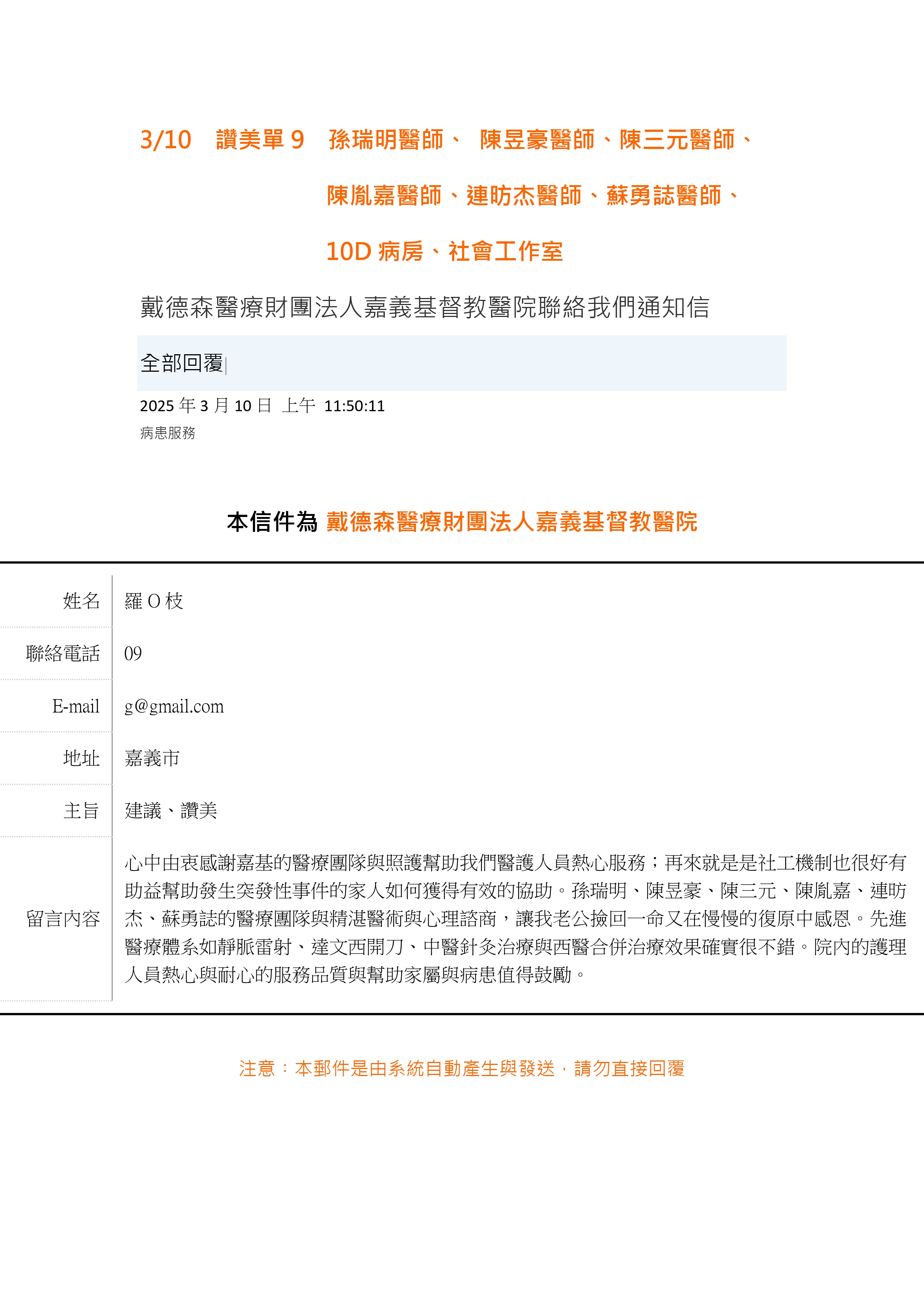 愛是永不止息- 來自家屬的肯定及感謝 嘉基 兒童醫學部林沛昀醫師【視病如親】