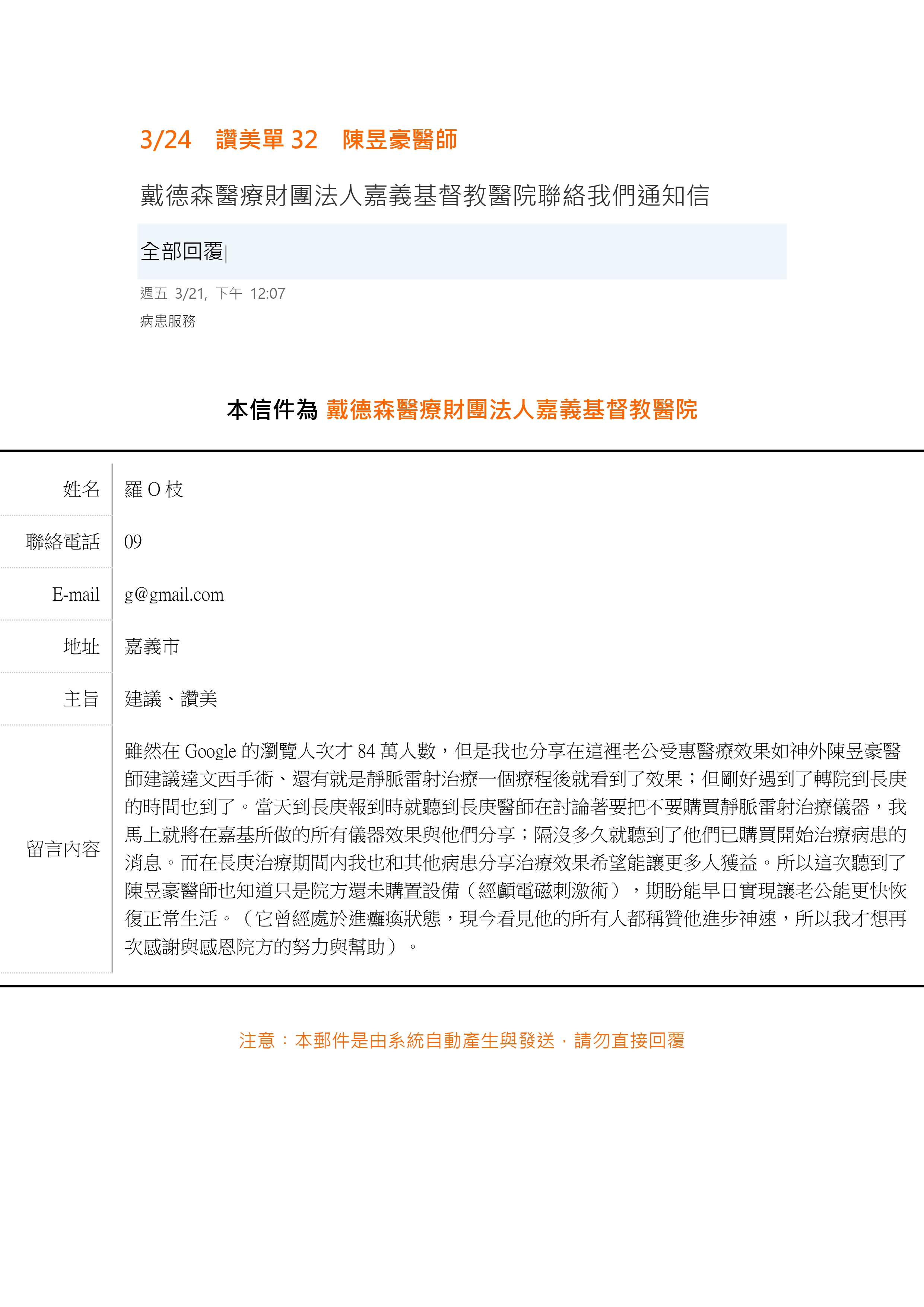 愛是永不止息- 來自家屬的肯定及感謝 嘉基 神經外科陳昱豪醫師【醫術精湛】